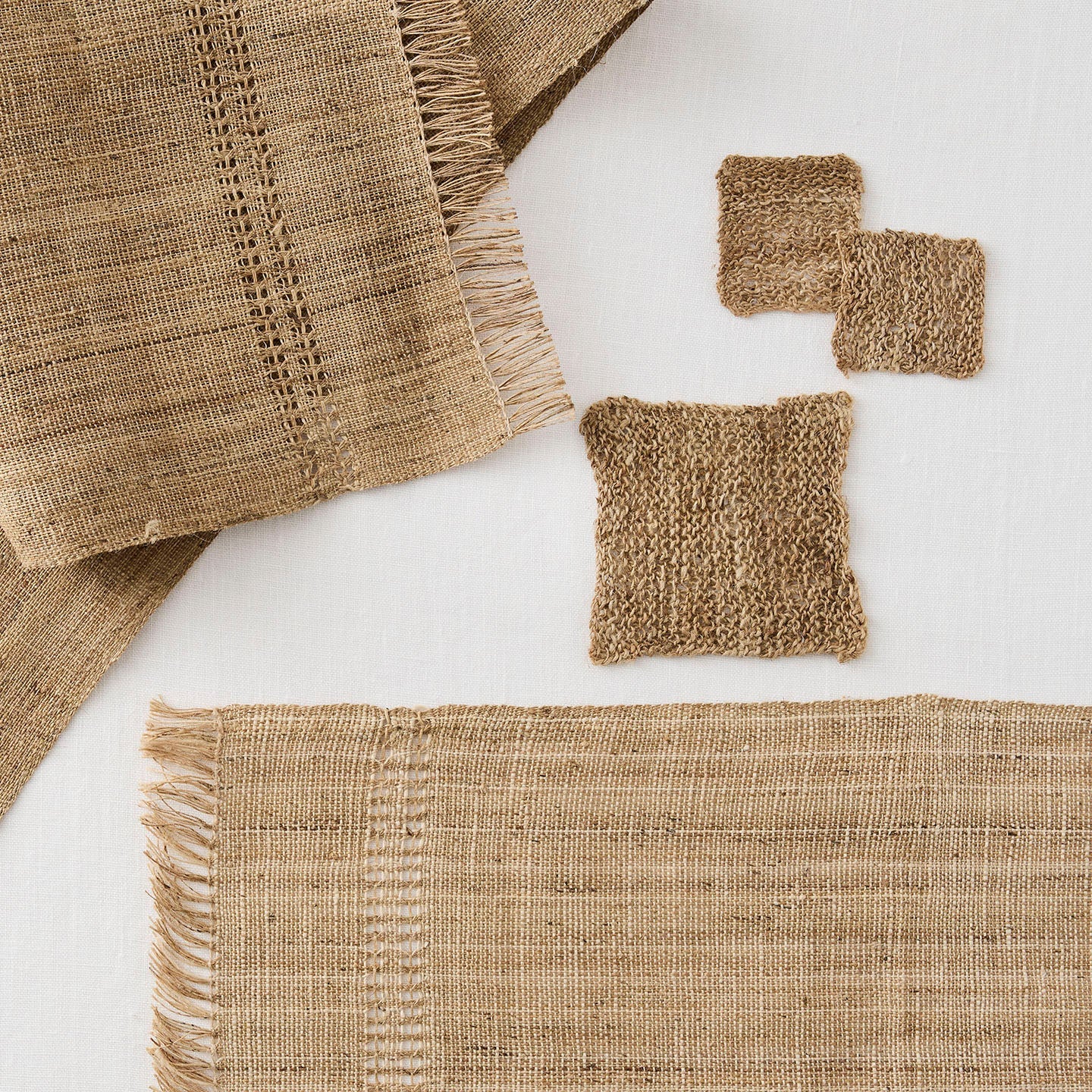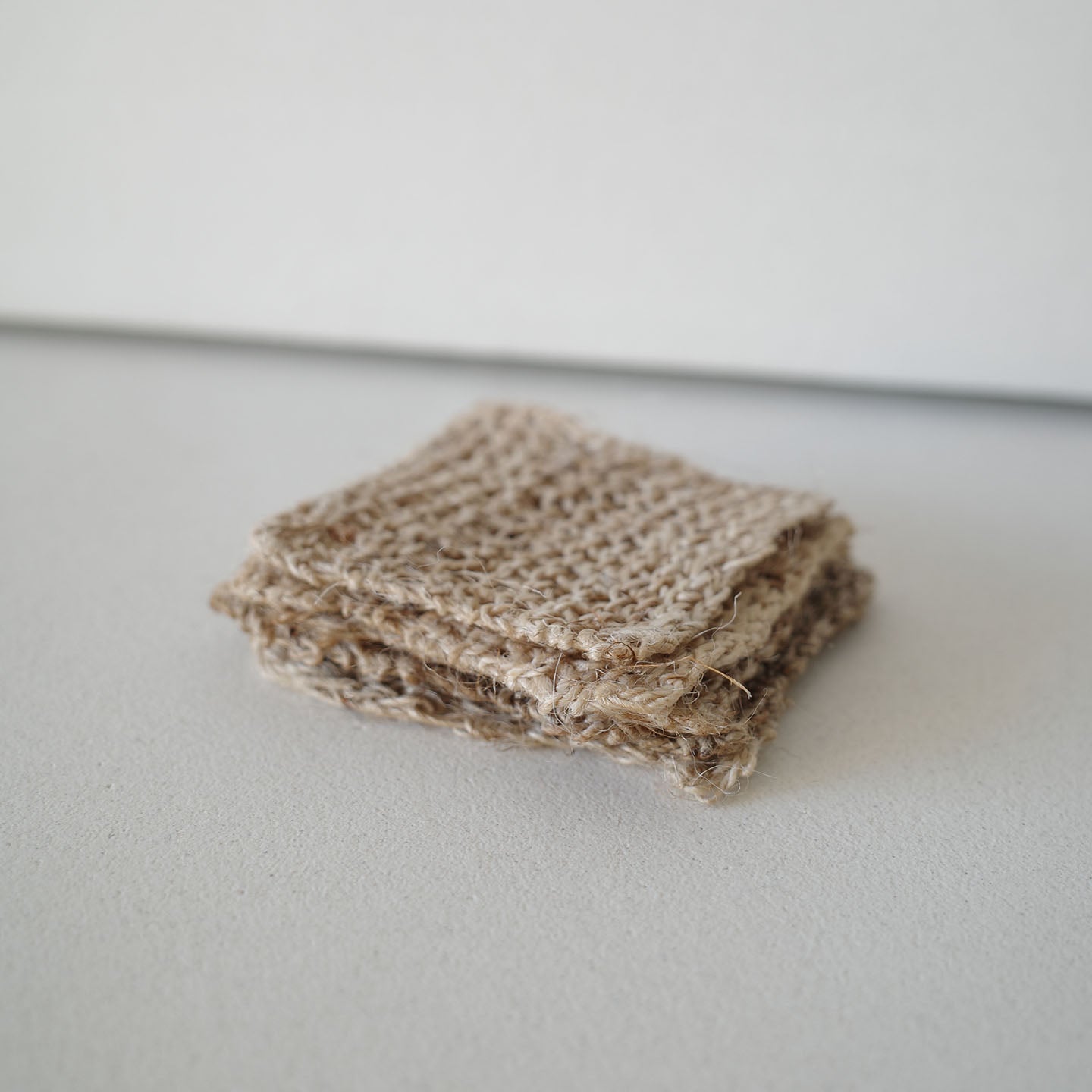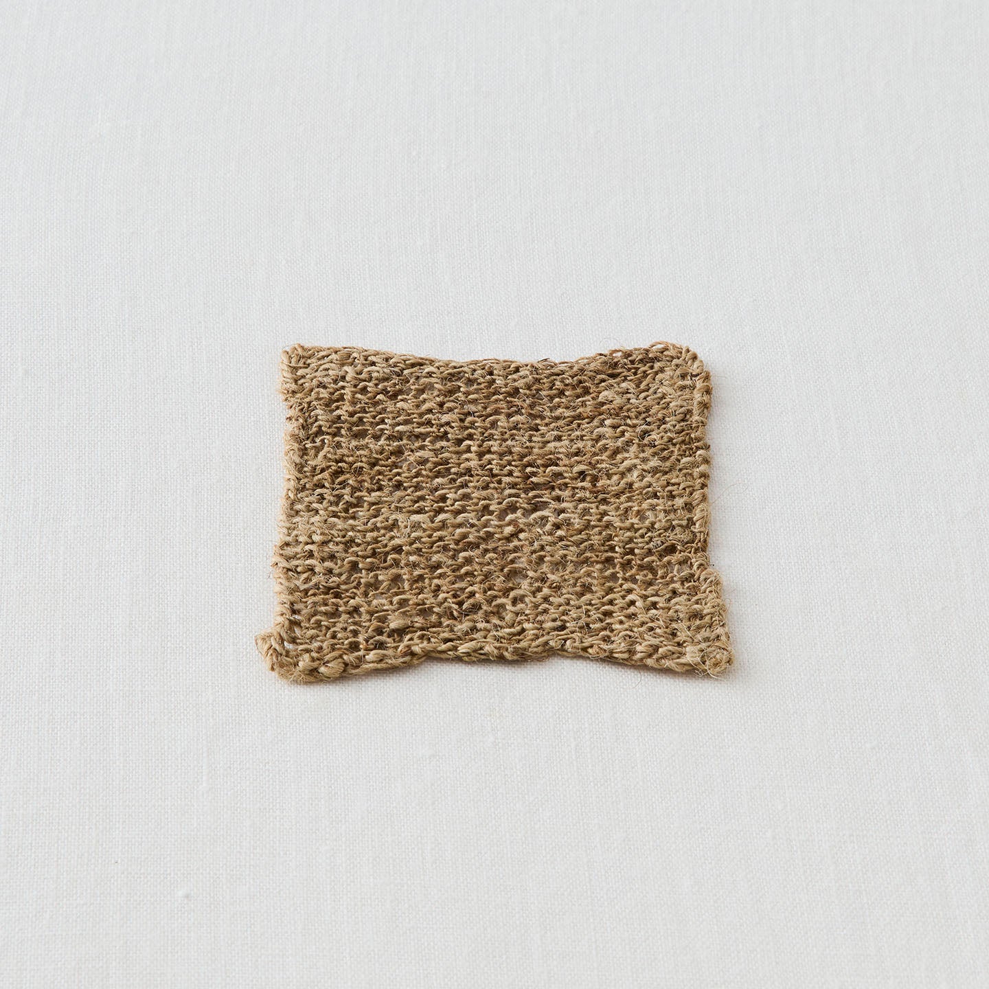 おおよそ5cm角の「ニットクロス」は、小ぶりな茶杯やお猪口、グラスの敷物にぴったり。オオイラクサの繊維はウールのようにやわらかく、使い込むほどに色合いが深まっていきます。