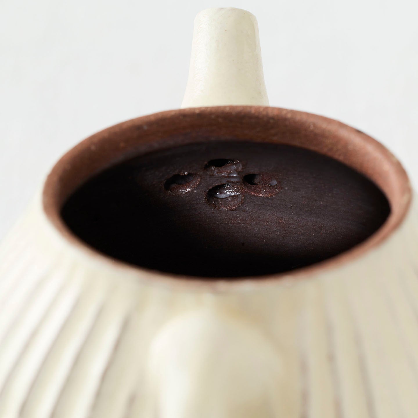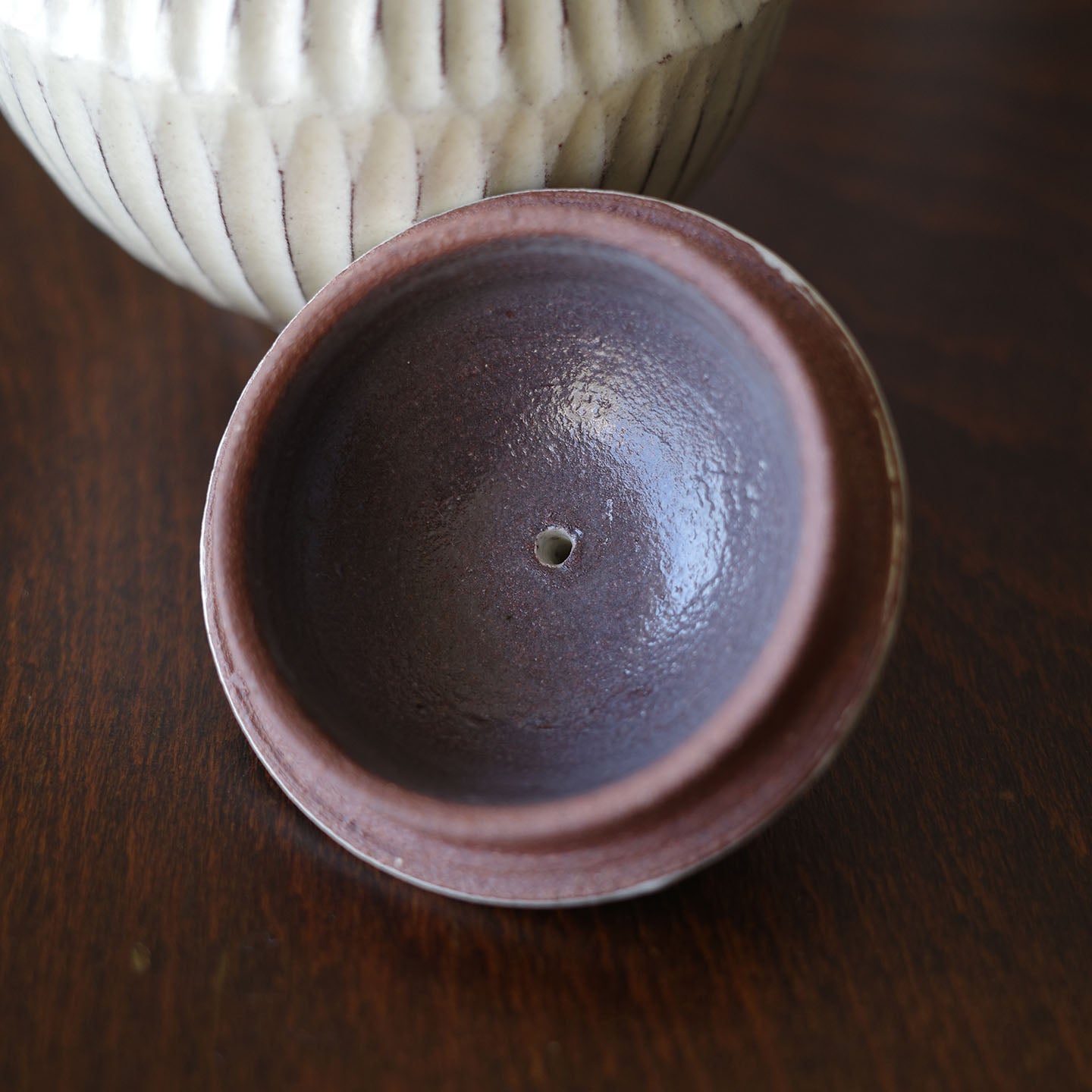 内側はふくらみのある形で茶葉がしっかり開き、少量のお茶を丁寧に淹れたいときにぴったり。緑茶や烏龍茶、香りを楽しむタイプのお茶と相性がよく、日々の小さな茶時間に寄り添ってくれます。
